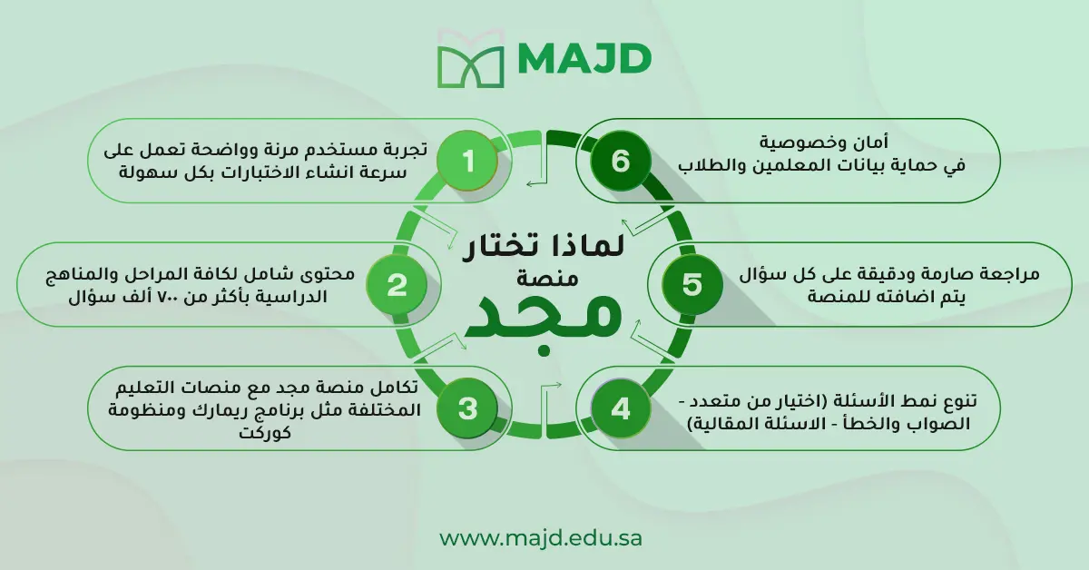 مميزات منصة مجد في تنوع الأسئلة واعداد الاختبارات